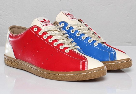 Jeremy Scott is known for messing around with tongues, lace accessories and pretty much anything else he feels like, but his latest adidas Originals by Originals design stands out just as much for its subtle quirkiness. The new Jeremy Scott x adidas Originals JS SLM Bowling resurrects a slim (SLM -- go figure) lowtop silhouette that only the most astute Three Stripes historian would recognize, their pointy-toed soles perhaps more familiar thanks to a Stan Smith-like traction pattern. Scott created a classic All-American look you might expect to find at the local AMF with red lateral and blue medial sides giving way to cream tongues and gum rubber outsoles.